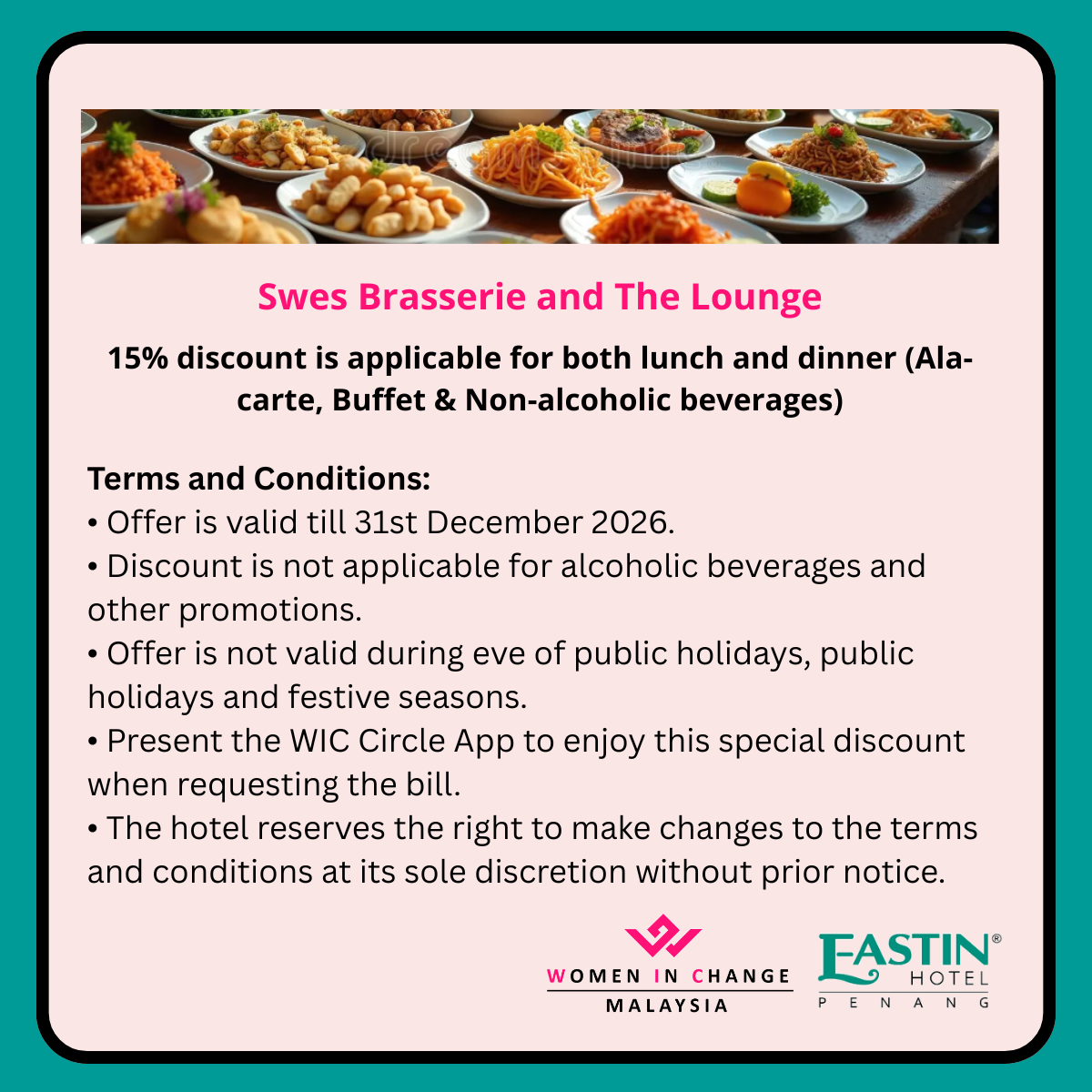 Simply present your WIC Circle App to our partner outlets to verify your Women in Change membership and enjoy your exclusive perks.